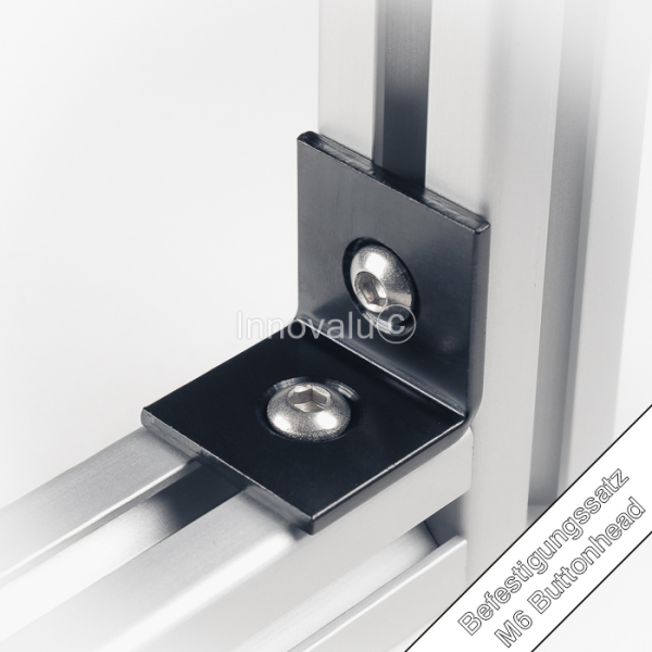 Der Winkel P30 ProLine ist ein besonders robuster Stahlwinkel in schwarzer Ausführung, entwickelt für die sichere Verbindung von Konstruktionsprofilen und Montageprofilen der Serie 30 (Nut 8). Mit seiner massiven Bauweise und dem hohen Eigengewicht eignet er sich optimal für Projekte, die höchste Belastbarkeit und Stabilität erfordern.